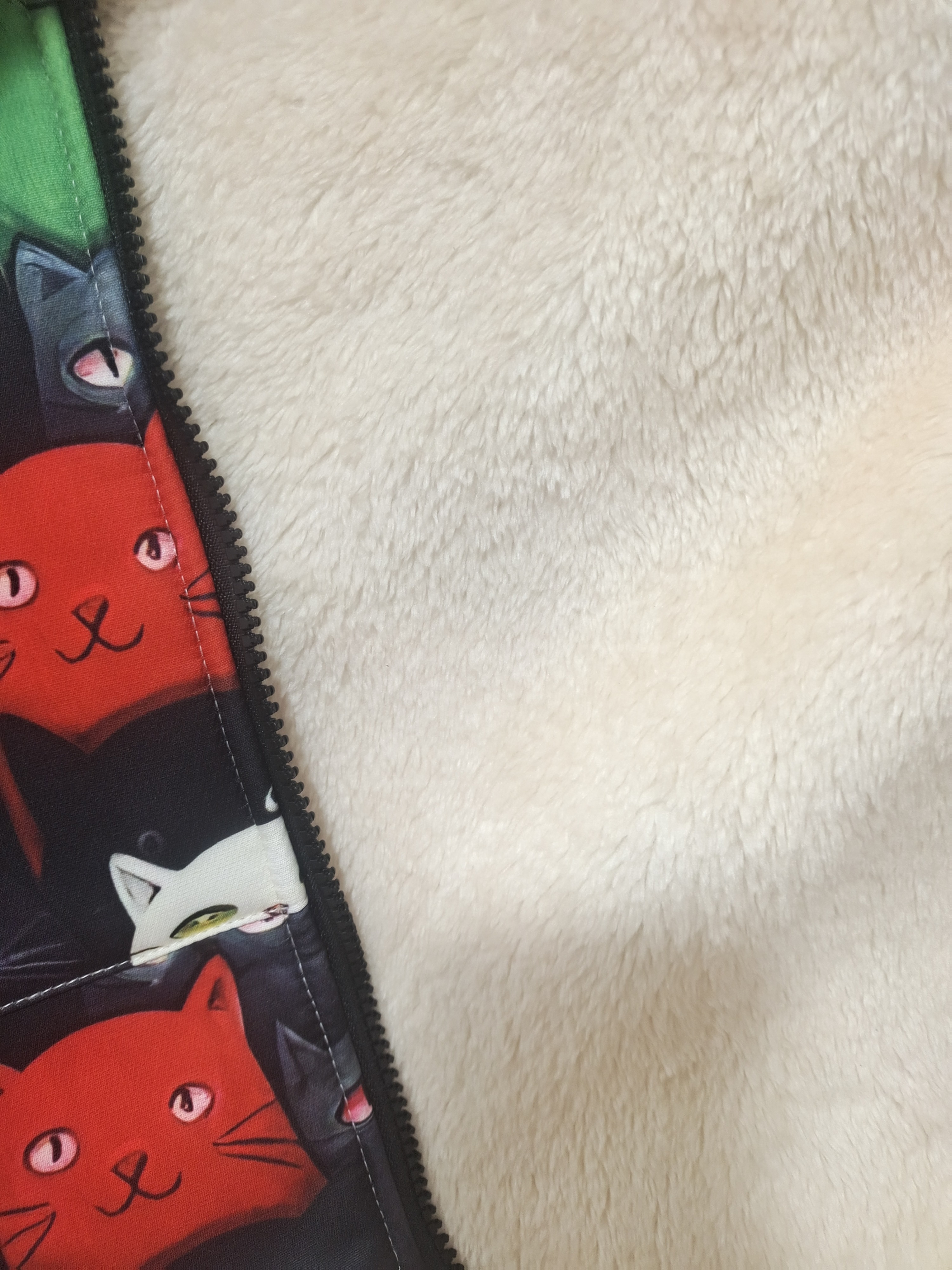 Bardzo ładne, żywe kolory, podszyty przyjemnym futerkiem, jednak cienki – lekki płaszczyk jesienny.