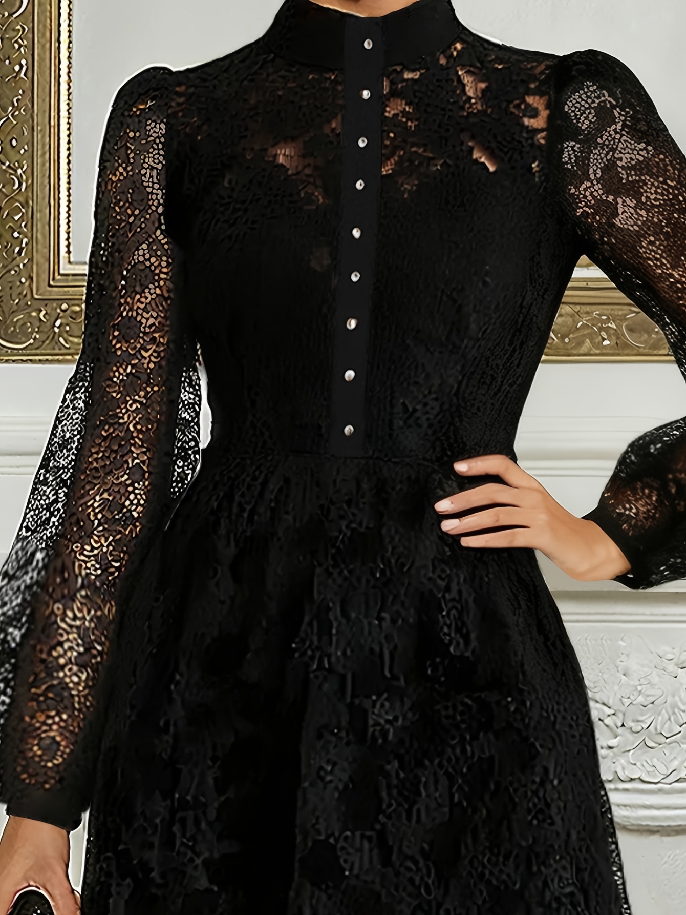 για Γυναίκες – Κομψό Στρογγυλό Λαιμό, Λεπτομέρεια με Φερμουάρ, Ιδανικό για Άνοιξη & Φθινόπωρο, Μόδα Ενηλίκων, Εлегаντ Ντύσιμο|Φόρεμα με Δαντέλα|Φόρεμα με Λεπτομέρεια Φερμουάρ