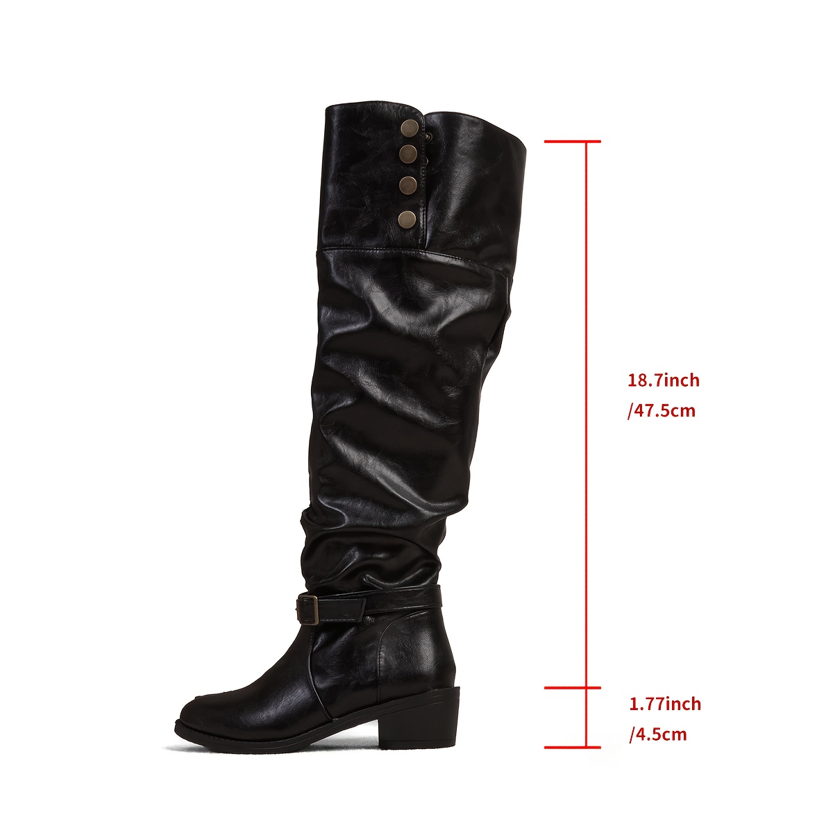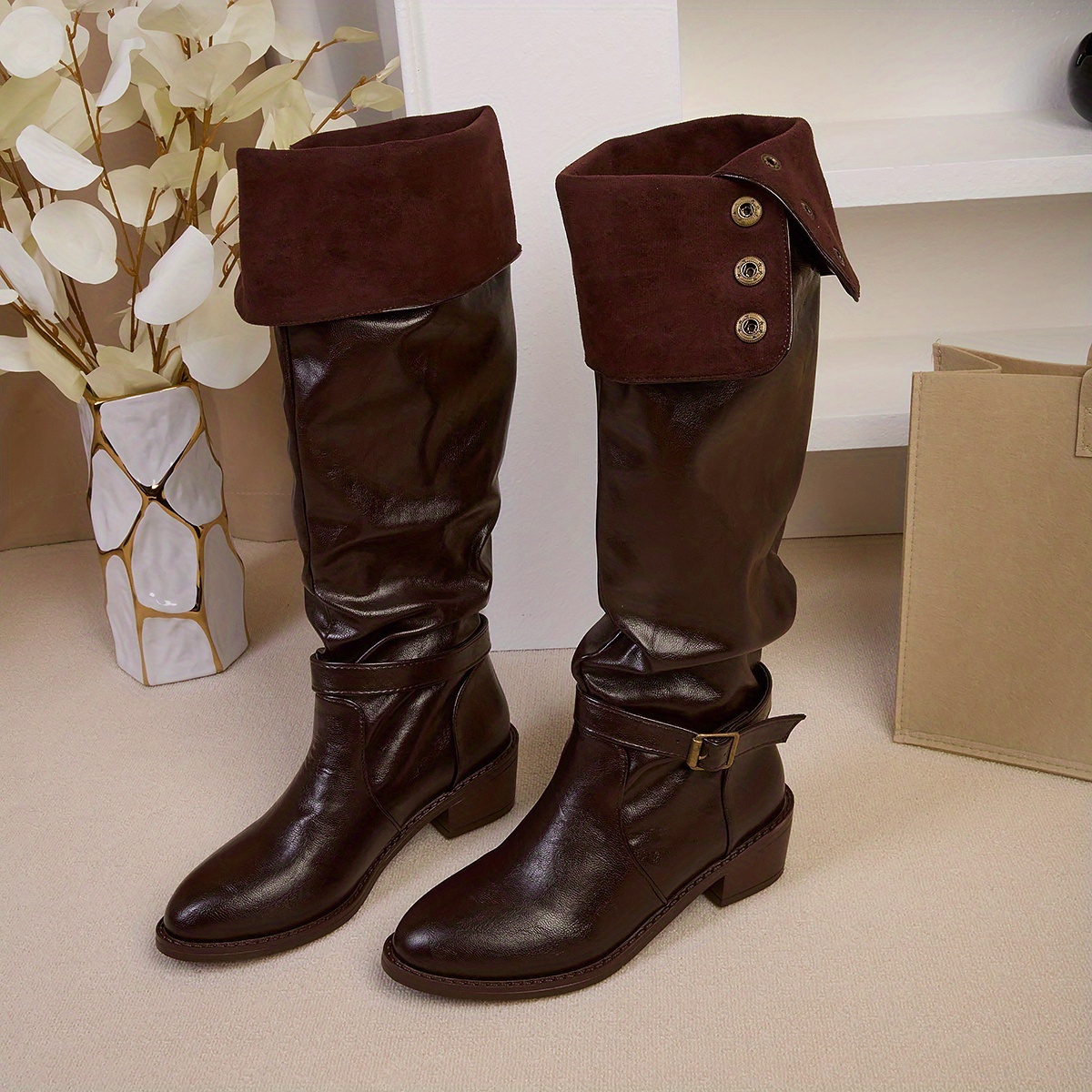 – /Κορεάτικο Στυλ Συνθετική Μυτερή Μύτη με Παχύ Τακούνι και Λουράκι με Πόρπη & Κορεάτικο Ζεστασιά – Μπότες Φόρεμα για Όλες τις Εποχές για Παντελόνια/Φούστες (Κλείσιμο Χωρίς Κορδόνια) – Κορεάτικη Μόδα Παπουτσιών