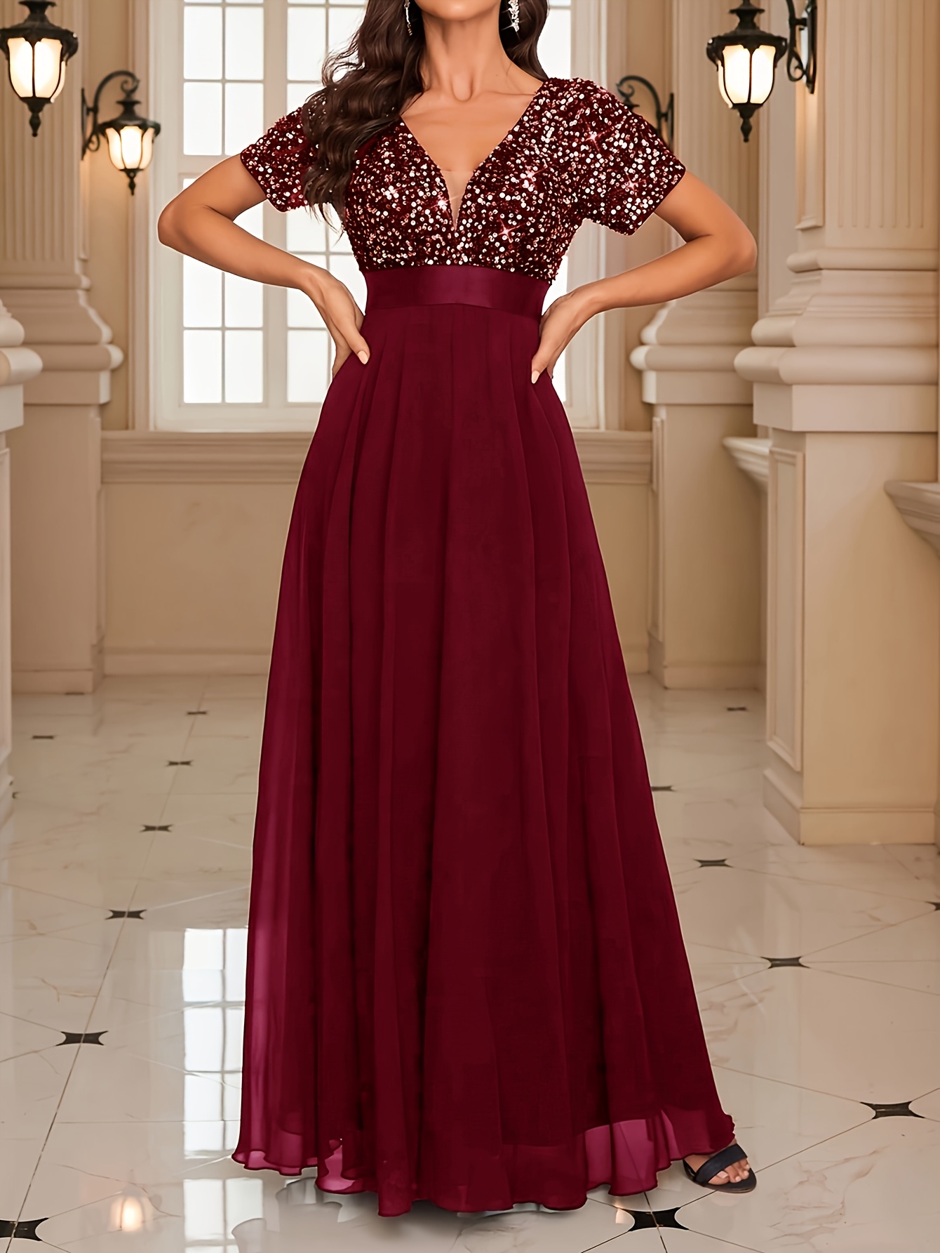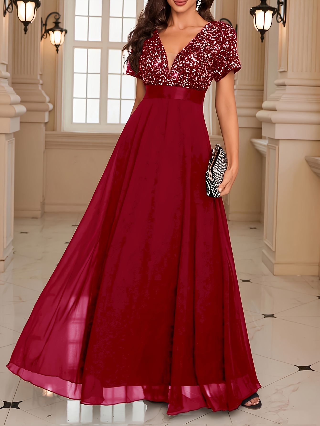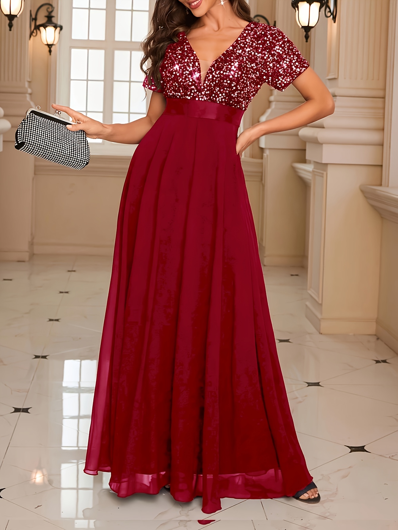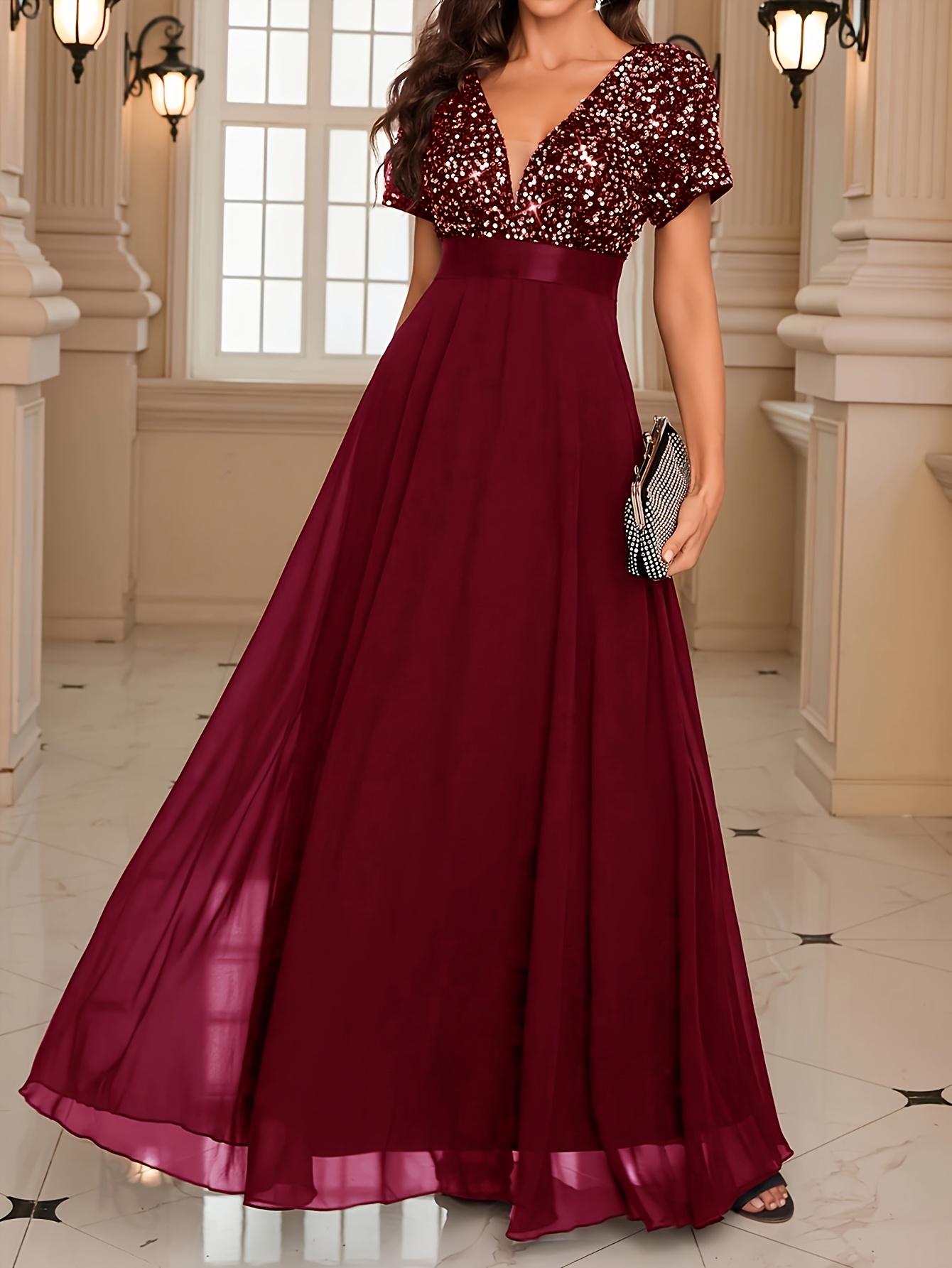 Роклята е хубава, цветът е точно като на снимките в сайта – на моите изглежда доста по-светъл, но истината е, че е действително пурпурен. Размерът ми пасва отлично – гръдната ми обиколка е 106 см. На моя ръст от 165 см роклята стига до пода и вероятно ще я скъся. Роклята е съвсем подходяща за вечерни партита, тържества или новогодишни празници. Доволна съм от покупката и препоръчвам!