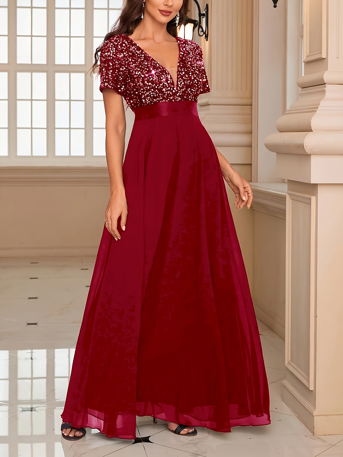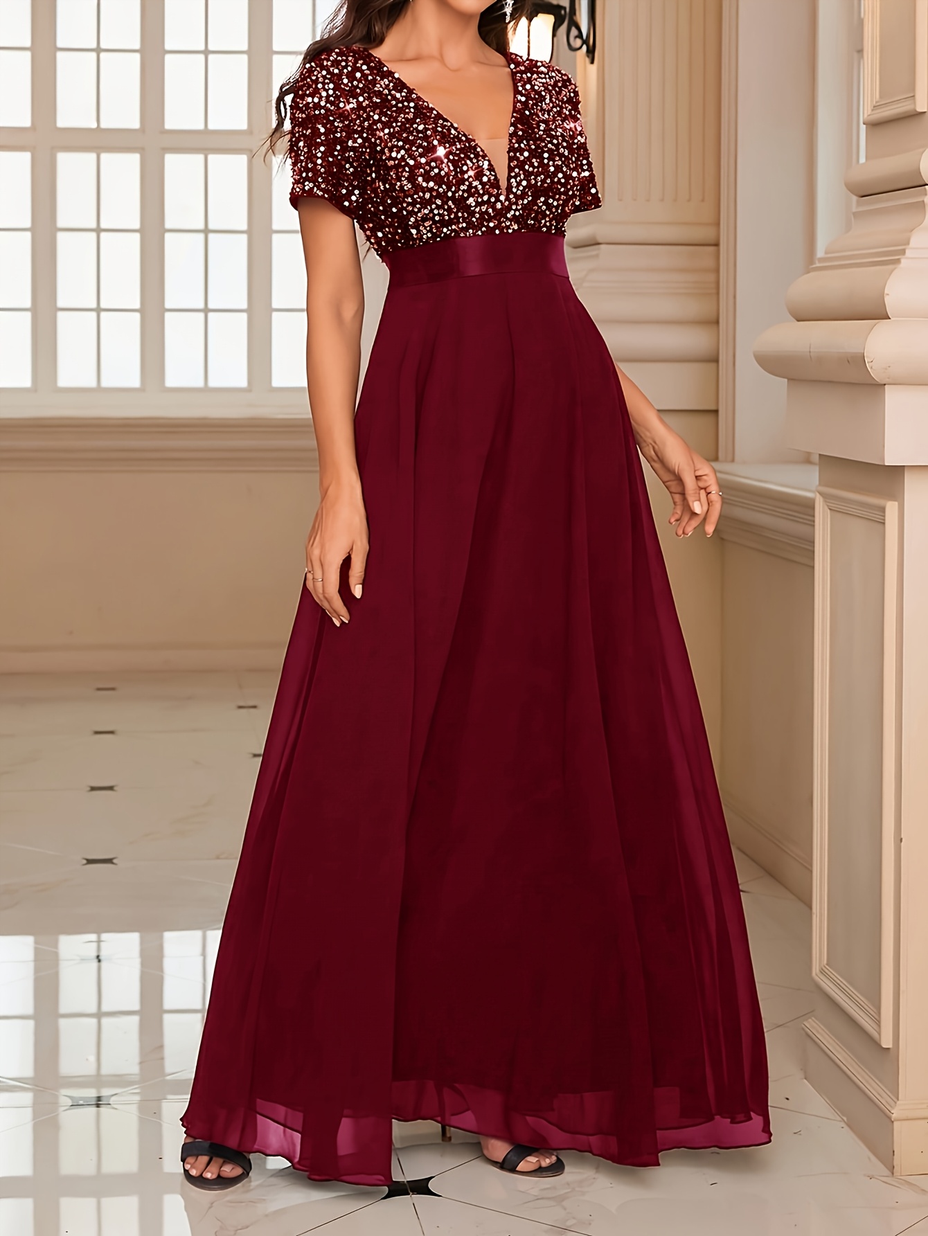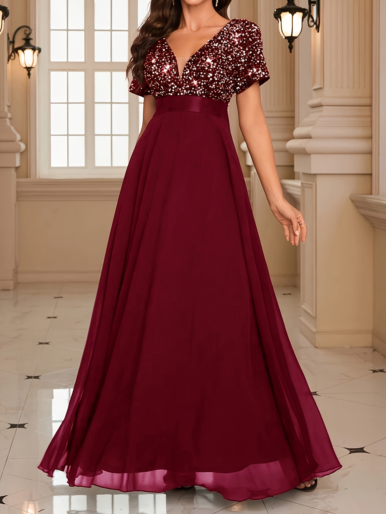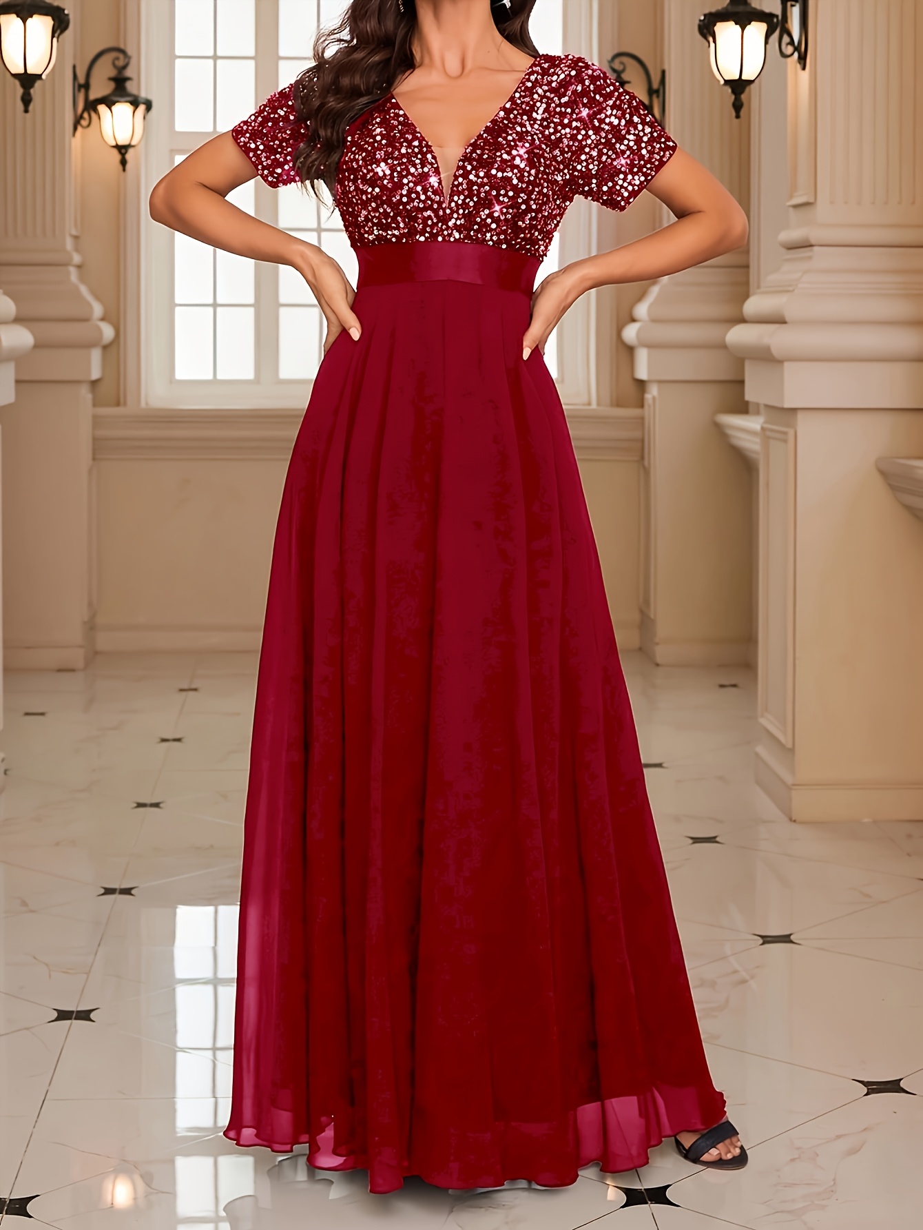 Роклята е хубава, цветът е точно като на снимките в сайта – на моите изглежда доста по-светъл, но истината е, че е действително пурпурен. Размерът ми пасва отлично – гръдната ми обиколка е 106 см. На моя ръст от 165 см роклята стига до пода и вероятно ще я скъся. Роклята е съвсем подходяща за вечерни партита, тържества или новогодишни празници. Доволна съм от покупката и препоръчвам!
